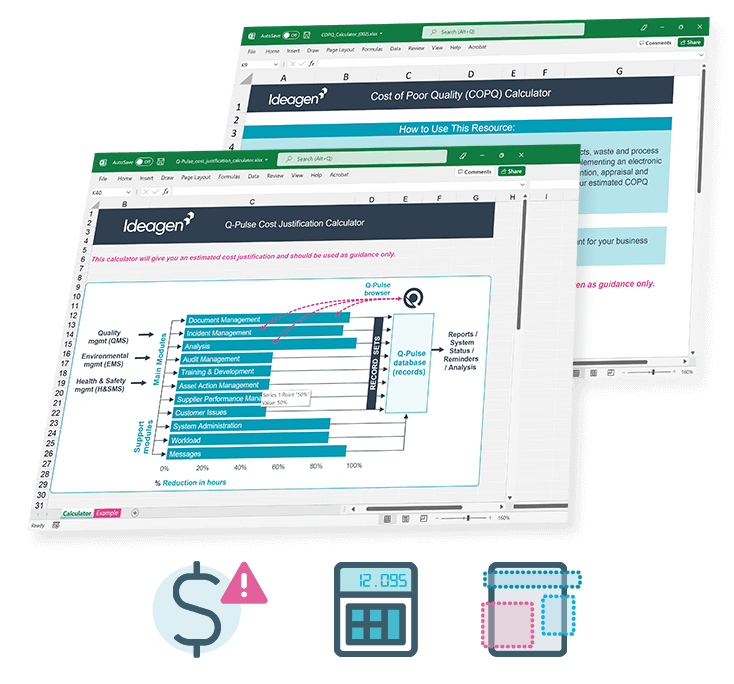 Start your journey towards electronic quality management system implementation. Compiled with quality professionals in mind, our buyer’s toolkit includes a QMS cost justification calculator, a Cost of Poor Quality (COPQ) calculator, and a business case template – so you can begin embedding essential Quality 4.0 principles into your organisation with ease.