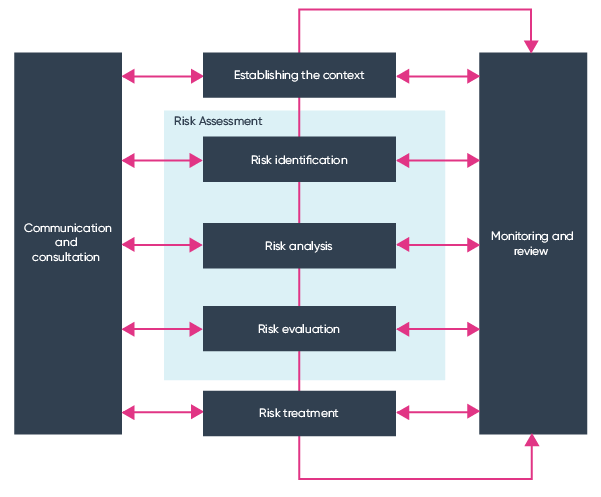 Once the context of the organisation and the scope of the risk management strategy are defined, the risk criteria can then be identified and developed (Clause 6.3). These sets of criteria are designed to establish the way risks are recognised and recorded. From this information, we can determine how to carry out an ISO 31000 risk assessment.