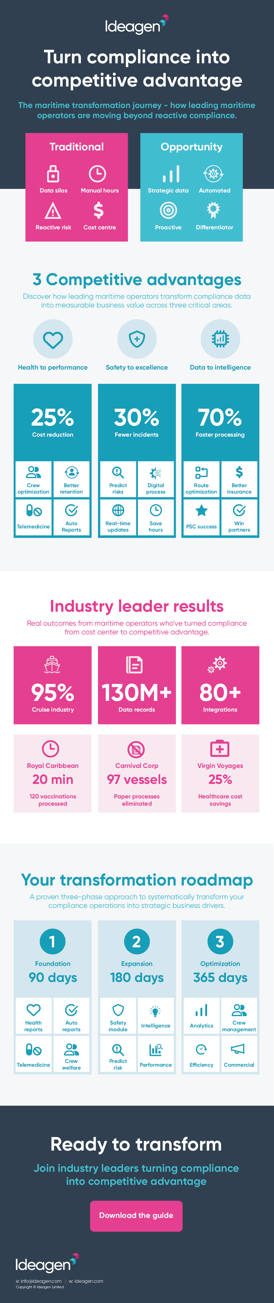 Our infographic on how to turn compliance into competitive advantage shows the maritime transformation journey and how to move beyond reactive compliance.